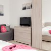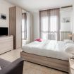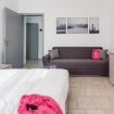 La camera da letto, spaziosa e climatizzata, è dotata di riscaldamento, un secondo divano per un'area relax privata e una televisione per goderti i tuoi momenti di intrattenimento direttamente dalla comodità del letto.