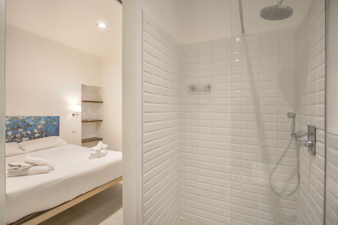 Al terzo piano senza ascensore di una palazzina storica, l'appartamento composto da camera matrimoniale principale con bagno privato, cucina completa collegata al salotto con un secondo bagno ed un divano letto matrimoniale nel salotto. Ulteriore letto matrimoniale nel soppalco sopra la cucina, accessibile attraverso la deliziosa scala a chiocciola in legno.