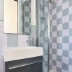 L'appartamento è un monolocale soppalcato situato al terzo piano senza ascensore. La zona giorno, con divano, TV, tavolo da pranzo e l'angolo cottura si trovano al livello inferiore, il letto matrimoniale si trova invece nel soppalco, accessibile tramite scala a chiocciola. L'appartamento ha il suo bagno privato e finestrato, completo di doccia e sanitari.